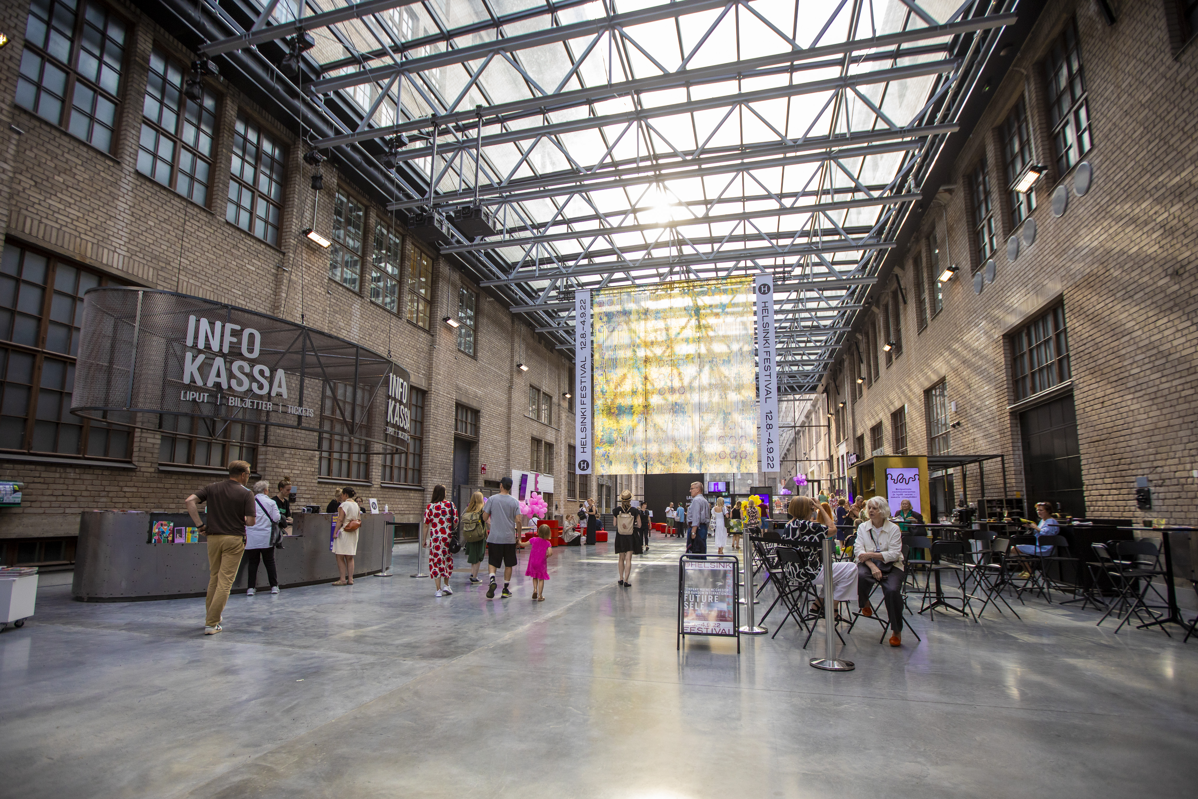 Kaapelitehtaan kulttuurikeskuksen infopisteelle ja lipunmyyntiin.