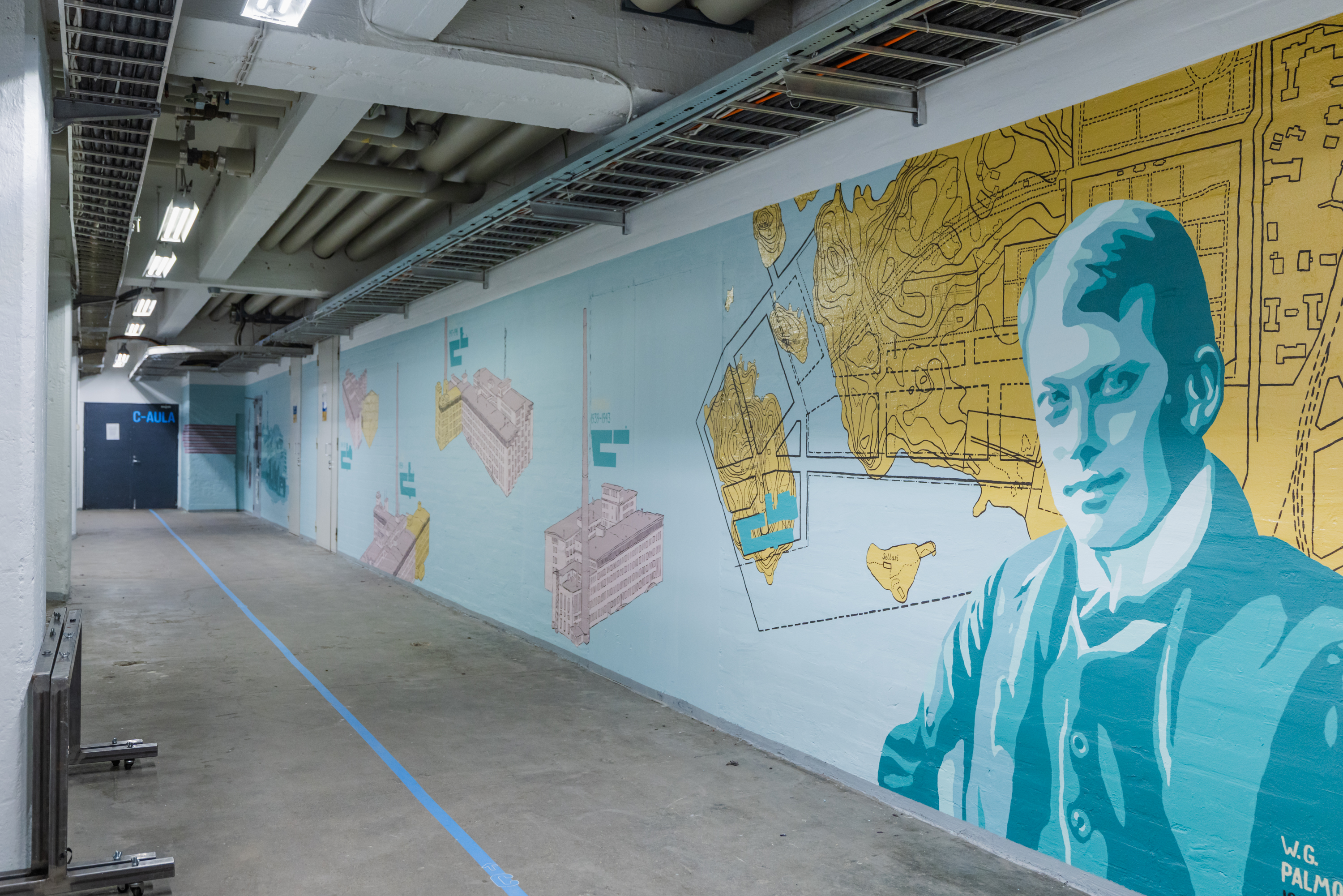 Seinillä nähdään Jörn Donner ja Erkki Tuomioja, joilla oli merkittävä rooli Kaapelitehtaan tulevaisuuden kannalta Helsingin kaupungin päätöksenteossa. Lisäksi muraaleihin on kuvattu ensimmäinen taiteilijavuokralainen, kitaristi ja säveltäjä Raoul Björkenheim sekä arkkitehti Pia Ilonen ja pitkäaikainen isännöitsijä Soile Kaukolander, joiden molempien kädenjälki näkyy Kaapelitehtaan nykyisessä ilmeessä ja toiminnassa.