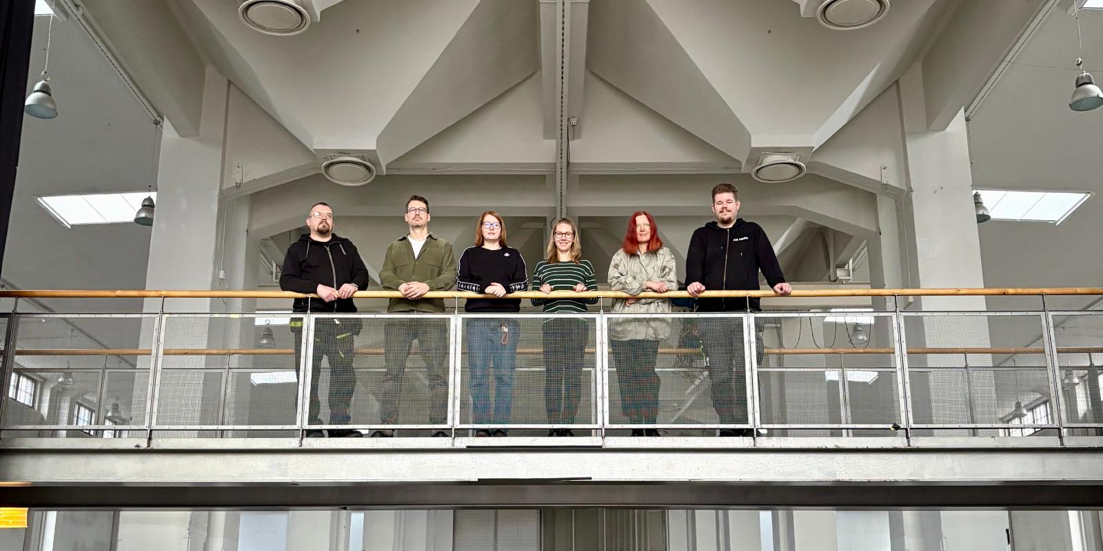 Kuva: KAAPELIn henkilöstöä Kattilahallissa / Kuvaaja: Aino Sadeniemi